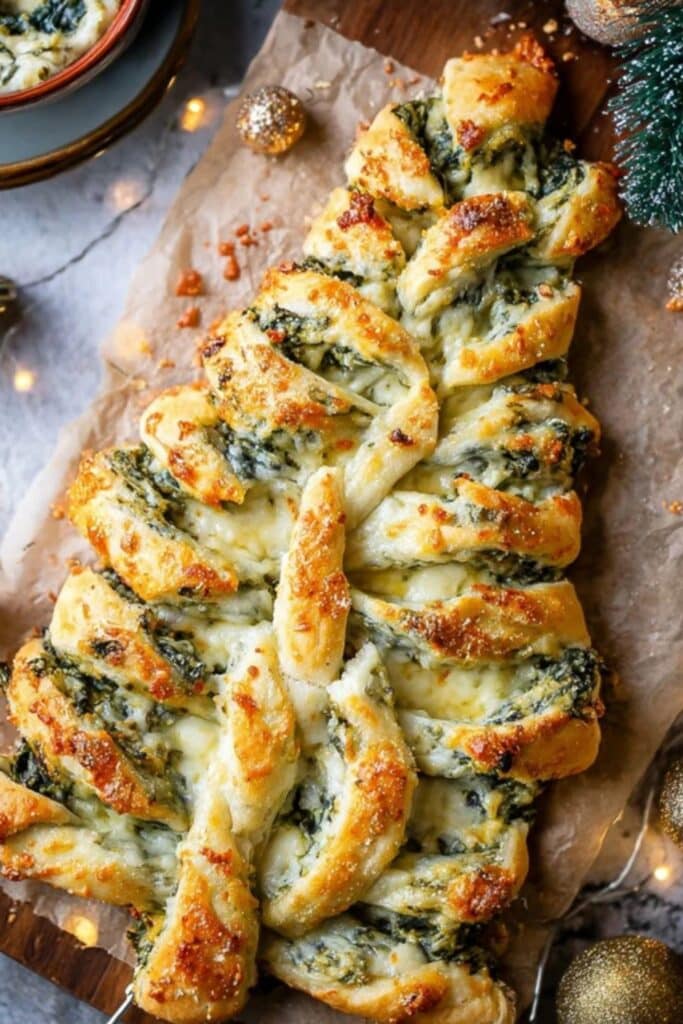 Presentation is everything. Place rosemary sprigs around your breadsticks and a tiny ramekin of marinara in the center as “tree ornaments.” It’s these small touches that make your Christmas Tree Spinach Dip Breadsticks feel like a gift.